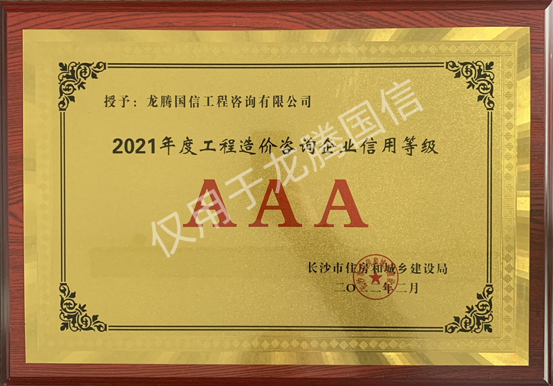 【喜訊】龍騰國(guó)信再獲長(zhǎng)沙市住房和城鄉(xiāng)建設(shè)局2021年度AAA級(jí)信用企業(yè)