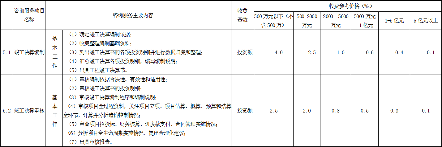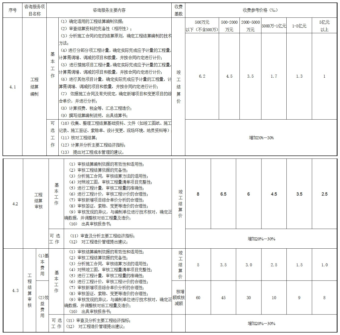 竣工決算編制或?qū)徍说淖稍兎?wù)收費參考價格表